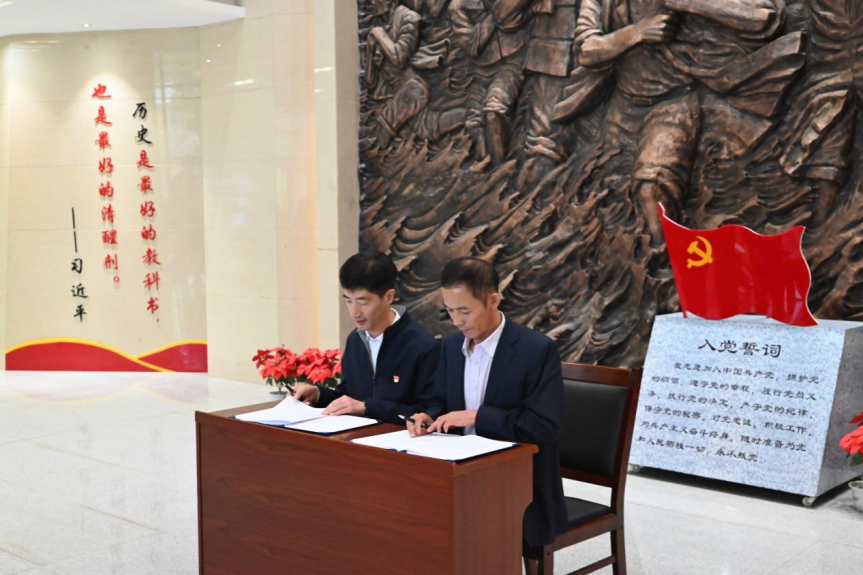 学院党委书记冯阳与珲春市大荒沟党史教育馆馆长邹志鹏签署合作协议