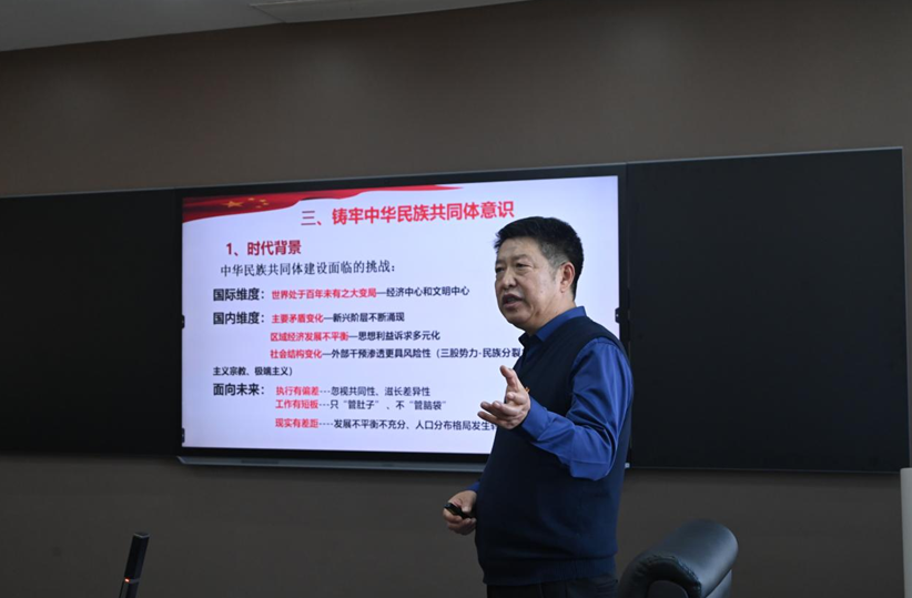 11月20日下午,经济管理学院在致远楼421会议室举办铸牢中华民族共同体意识报告会。会议邀请学院关工委主任、学校“优秀共产党员”王国臣教授作专题报告。会议由学院党委书记冯阳主持。