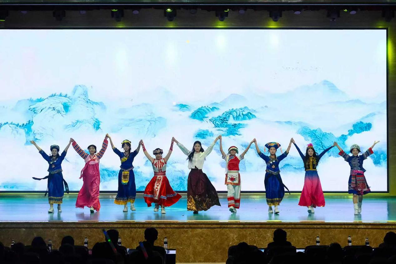 互动环节中,新生们积极参与问答游戏,在欢笑中拉近了彼此距离,增进了对学校学院的热爱。拾音文化艺术社团带来的《铭记》《鼓楼》《蓝莲花》引发全场大合唱,将晚会气氛推向高潮;舞蹈《民族绘关山》融入铸牢中华民族共同体意识主题,展现独特的艺术魅力。学院学生会表演的《舞聚经管》,以整齐有力的奋进表演,为晚会画上了圆满句号。