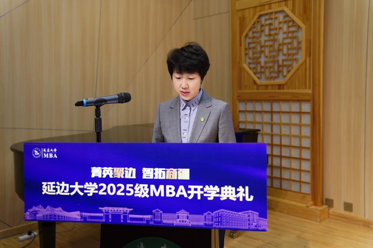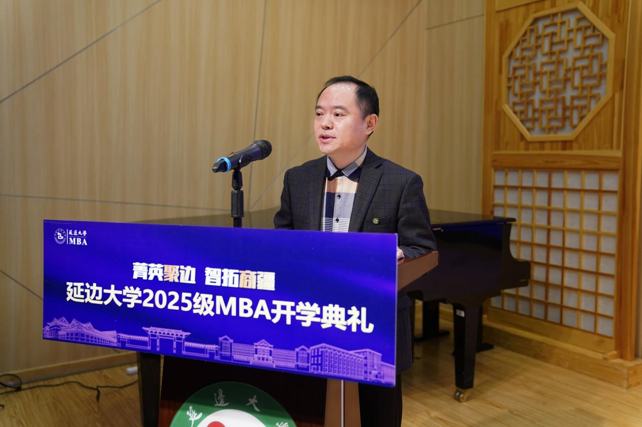典礼在庄严的国歌声中拉开帷幕。延边大学党委书记杜锐首先代表学校向全体2025级MBA新生的到来表示热烈祝贺和诚挚欢迎。他在致辞中指出,当前世界正处于百年未有之大变局,中国经济高质量发展进入关键时期,对具备全球视野、战略思维、创新精神和卓越领导能力的高层次管理人才提出了更高要求。延边大学MBA项目依托学校深厚的办学底蕴和地处东北亚核心区域的区位优势,致力于培养扎根实践、勇于担当、能够应对复杂商业挑战的复合型管理精英。