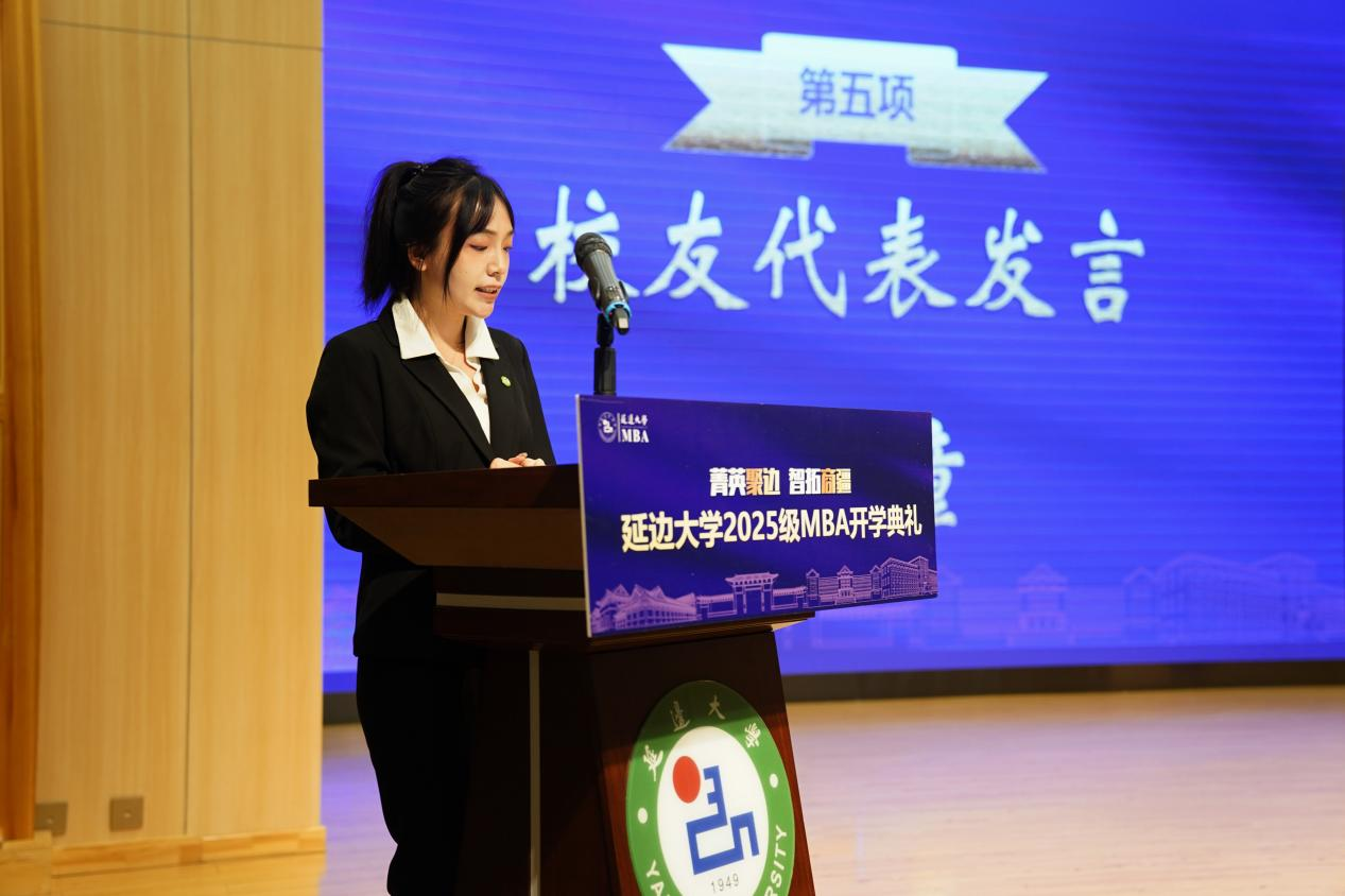 随后,新生代表吕洋子表达了对未来的无限憧憬,她表示将以饱满的热情投入到MBA的学习中,在汲取专业知识的同时,积极参与实践交流,努力将所学转化为推动事业发展的动力,与同学们携手并进,共同成长。