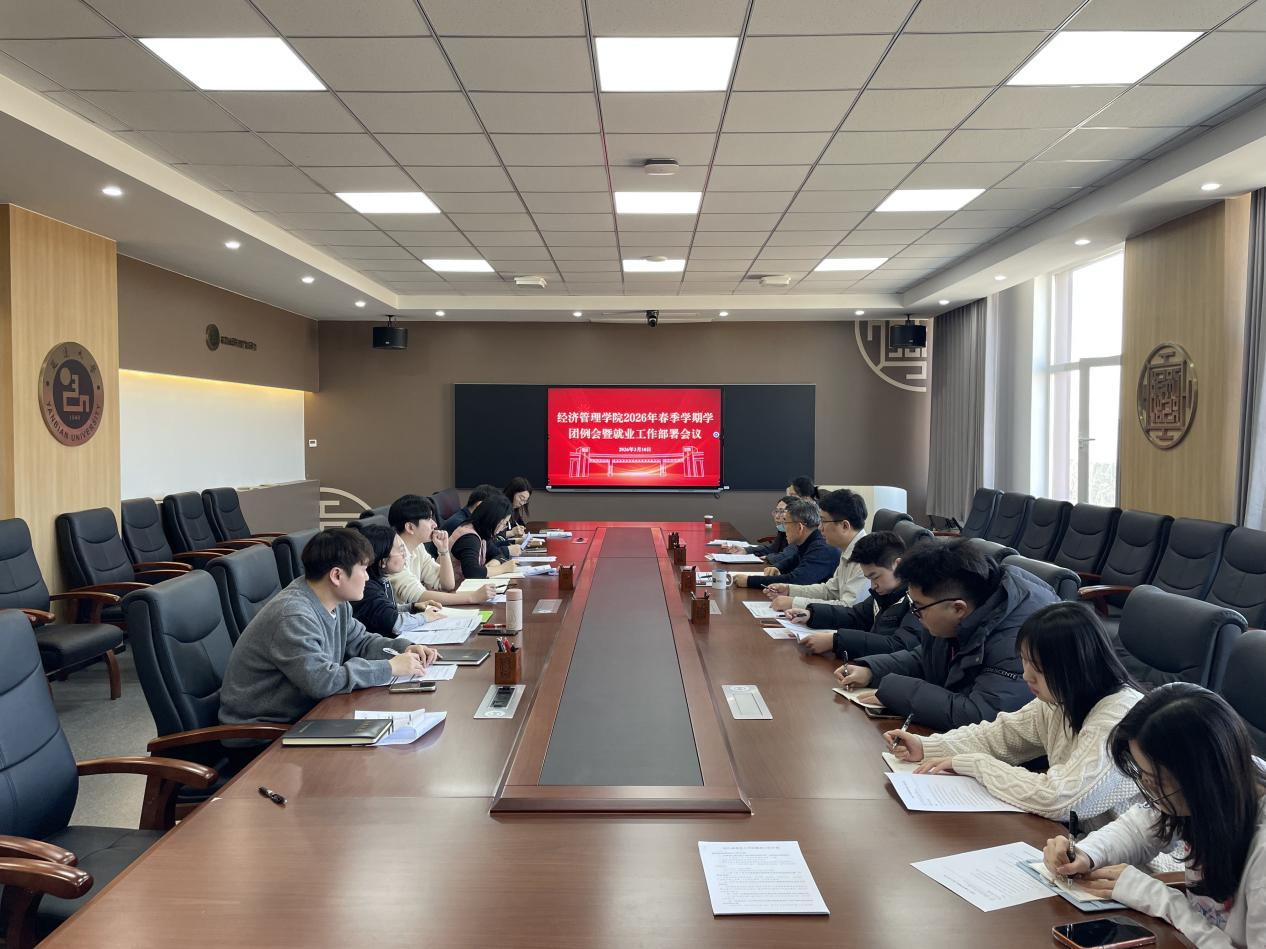 2月28日上午10:00点,经济管理学院在致远楼421会议室召开2026年春季学期工作会。学院领导班子成员及职能部门负责人参加会议,学院党委书记冯阳主持会议。各职能部门负责人围绕新学期重点工作的推进思路、具体举措等进行了汇报和交流,分管院领导分别提出了针对性的意见和建议,学院行政工作负责人黎海华就做好学前教学...